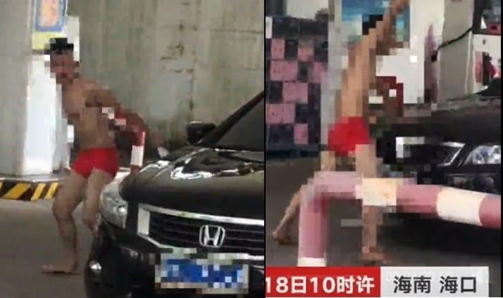 中國大陸海南海口市一名只穿內褲的男子,日前在加油站大鬧了起來,不但興奮地又跳又叫,還動手狂拍正在加油車輛車窗,後來人躺在地上不讓車子離開,結果被警方帶走後,他居然對所有事情都沒有印象, 2年前也發生過一樣的怪事,認為自己是鬼上身。