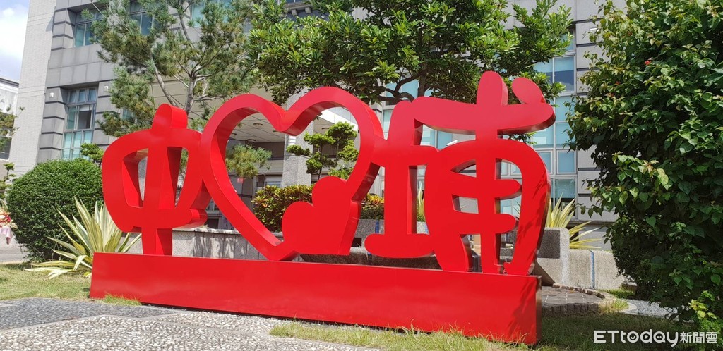 ▲▼ 中埔新地標「愛在中埔」裝置藝術,火紅顯目造型,吸引大人小孩目光。(圖/記者翁聖勳攝)