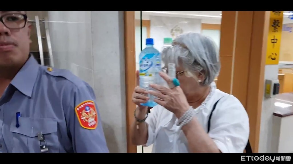 ▲太電董事長特助馮小容訊後遭檢方請回,用水瓶遮臉步出北檢。(圖/記者趙永博翻攝)