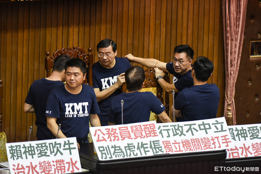 不過,目前藍委已佔領主席台,預計杯葛賴清德的施政報告及總質詢,而民進黨團也已沙盤推演,但應不會採取將藍委拉下台的策略。