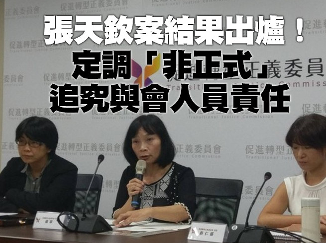 促進轉型正義委員會委員兼發言人楊翠21日召開記者會,公布「0824非正式會議」相關事項初步調查結果,報告「定調」前副主委張天欽被披露的談話內容都是「非正式會議」,但發言仍屬嚴重失當,將追究與會相關人員責任。