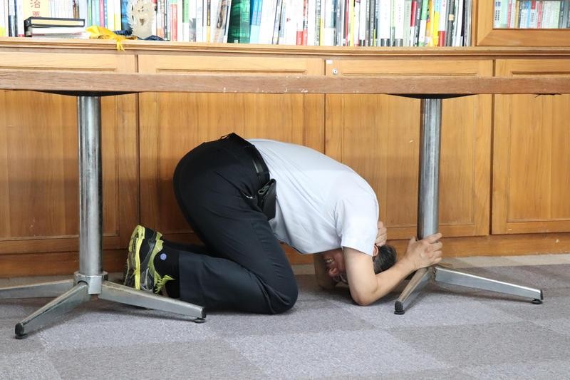 今天是國家防災日,更是921大地震19週年,內政部消防署建置的「台灣抗災資訊網」本週上線,該網站放了不少內閣團隊成員、縣市首長參與全民地震演練的避難動作照片,包括教育部長葉俊榮、台北市長柯文哲等人都示範發生地震時躲在桌下的姿勢。