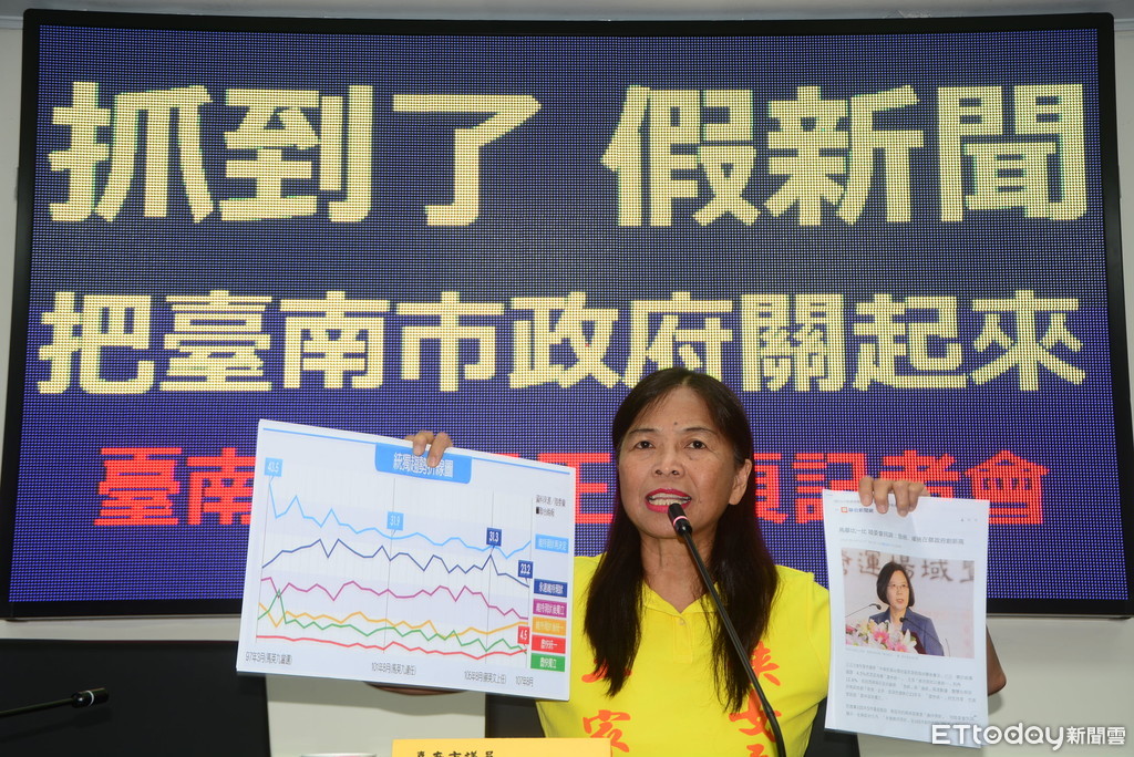 ▲台南市議員王家貞指出市府在回應稿中宣稱台獨是主流民意,但根據陸委會最新的民調顯示,支持度不到18%的台獨,怎麼會是主流民意。(圖/記者林悅翻攝)