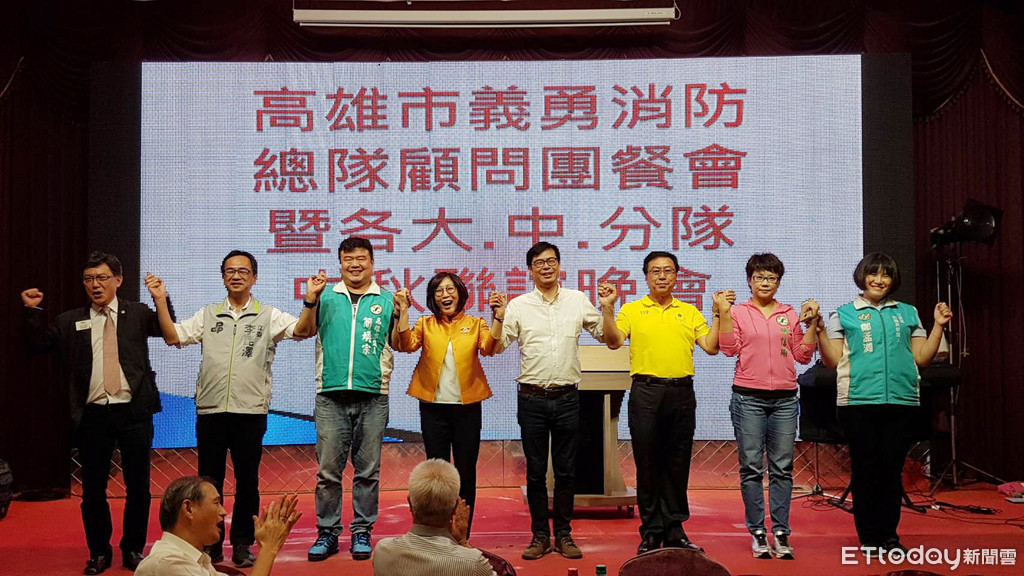 民進黨高雄市長參選人陳其邁,21日出席高雄市義消總隊顧問團餐會暨中秋聯誼晚會。現場近500名義消弟兄,以極熱烈的凍蒜聲及拍手聲歡迎陳其邁,場面十分熱烈。陳其邁表示,未來他當選市長,一定會擴大編制,將體制外的義消顧問團納入、將危險加給及繁重加給編入公務預算、加倍預算改善警消人員裝備以及提高義消的給付同義警標準。