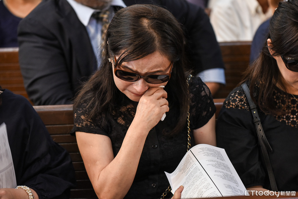 ▲楊偉中追思會,陳以真接受各方致意。(圖/記者林敬旻攝)
