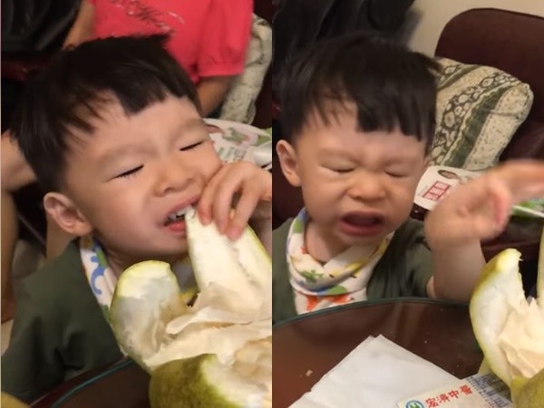 中秋節到了,親友聚在一起烤烤肉,吃著柚子聊天便是最平凡的幸福。新北市一名女網友張孜孜撥了柚子給2歲的兒子小卷吃後,對方竟自己跑去桌邊想偷吃,但含下的卻是「柚子皮」,瞬間可愛的小臉變成「囧臉」。