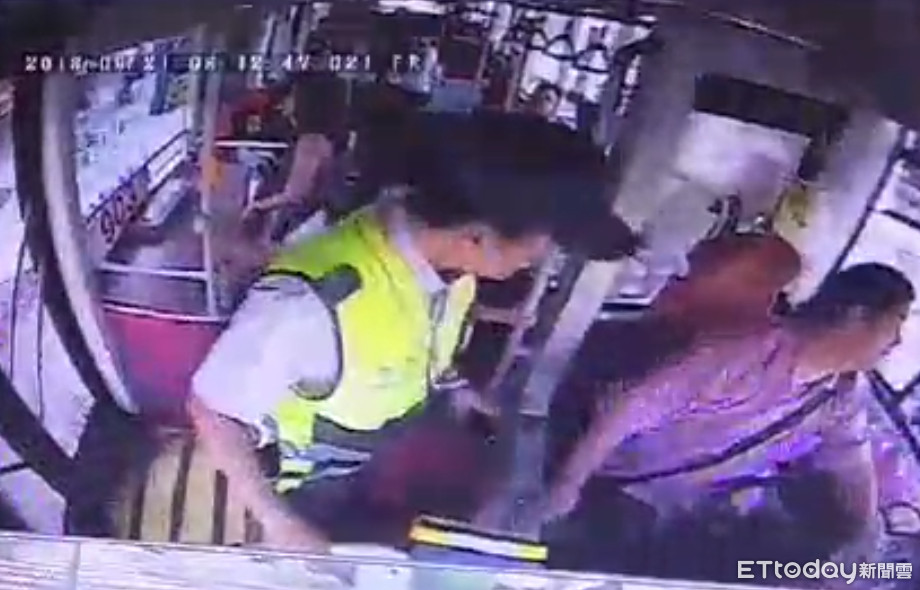 ▼公車司機經過執勤員警時趕緊請員警上公車。(圖/記者柳名耕翻攝)