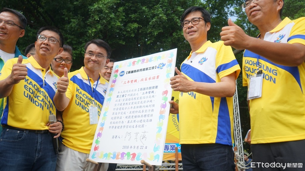 陳其邁表示,之前和高雄教育產業工會座談時,就已提及要改善高雄整體教育環境,尤其是老師的教學品質和學生的學習品質;未來將整合國營事業資金,以及市府的公務預算,一年內完成工業區、國營事業、機場周遭冷氣機、空氣清淨機的裝設、三年內盤點全高雄的學校及學習環境,讓所有學子,都能在健康、安全、舒適的環境,安心地學習。此外他也將給足代理教師一年聘期,同工同酬,保障代理教師工作權益。