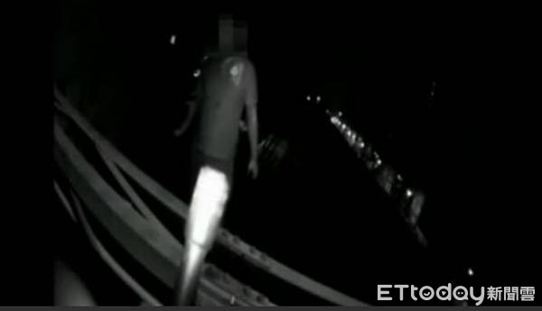 ▲男子站在跳橋的地點(紅色三角錐處)。