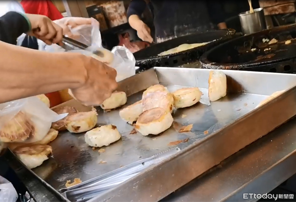 鏡頭畫面一轉,攤販前塞買了許多饕客爭相排隊,人多到排到隔壁攤販,但大家誰也不讓誰,為了就是要吃到這一顆熱騰騰又好吃的水煎包。