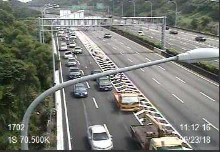 高公局表示,今日上午西部國道時速低於40公里路段包括,國1北上圓山至五堵及國1高架南下中壢轉接道至校前路(事故),其餘路段大致行車順暢。