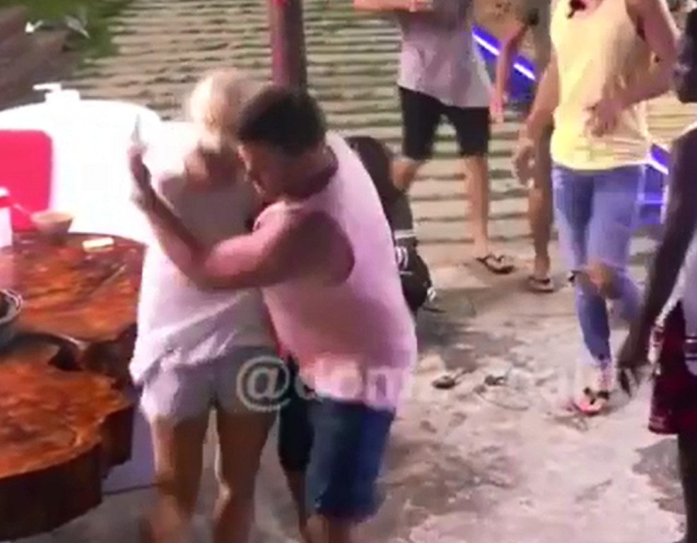 真人實境節目《DOM-2》15日上傳一片段,畫面中只見一群藝人正圍坐聊天,卻突然傳出女子尖叫聲音,身穿白色吊嘎的丈夫瓦勒里最先衝出查看,發現寶貝女友佩特里在妻子腳下護頭哀號,一步上前伸手勒住妻子的頸部,用力一壓猛掐不放,似乎想要給個教訓。