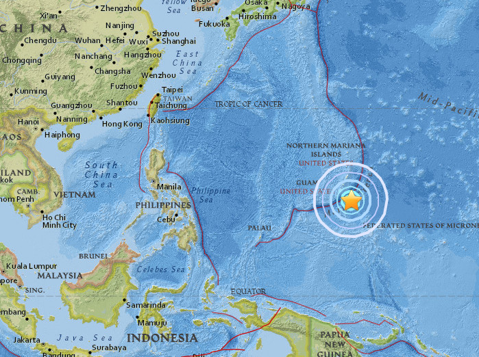 ▲ 關島外海發生規模6.4地震。(圖/USGS)