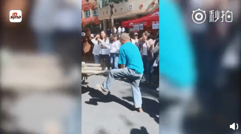 ▲社團招新跳熱舞,阿伯推車8+9姿勢亂入。(圖/翻攝自新浪新聞/同下)