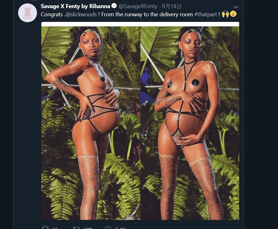 美國22歲辣模伍茲(Slick Woods)日前身懷六甲參加紐約時裝周走秀,身穿美國歌手蕾哈娜(Rihanna)自創內衣品牌「Savage x Fenty」,就在要登台走秀前,伍茲開始腹部陣痛症狀,一邊忍受宮縮,一邊完成走秀,結束後才急忙送醫。對此,很多網友大讚伍茲超敬業,連蕾哈娜事後在Instagram上發現這位辣模,也表示很謝謝她能完成這次的作品。