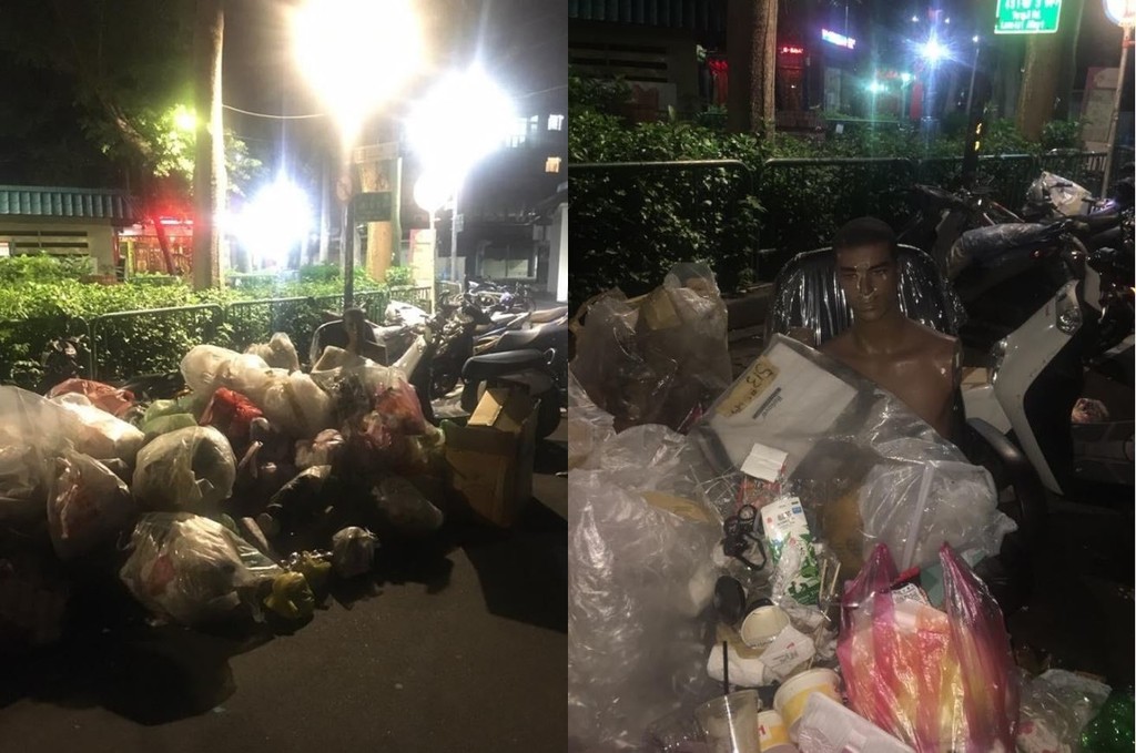 女網友在臉書「爆廢公社二館」社團中貼出一張照片,「下班回家我真的差點沒被嚇死」,在燈光昏暗的垃圾堆中,「怎麼有一個人躲在垃圾堆裡面對我笑,笑到我心裡發寒」,只見照片中的人形模特兒坐在垃圾堆裡的椅子上,看起來就像真人一樣。