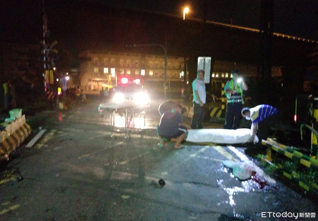 ▲旗官平交道事故,機車被撞離平交道,顯見撞擊力道之大。