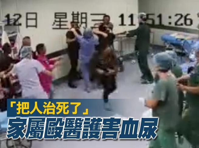 ▲手術室轉運間死者家屬暴打醫護。(圖/翻攝自新京報我們視頻)