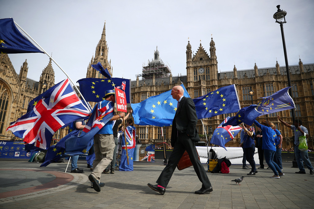 ▲「英國脫歐」(Brexit)在即,民眾在英國倫敦下議院示威,希望政府能夠仔細評估「脫歐」是否值得。(圖/路透社)