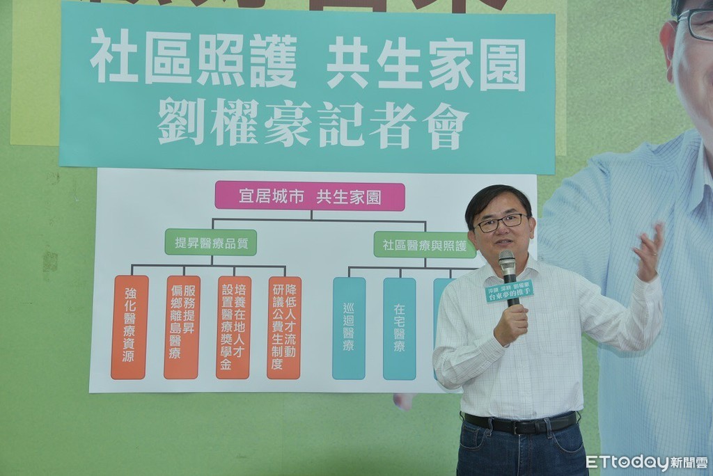 民進黨台東縣長參選人劉櫂豪,26日召開「社區照護 共生家園」影片發布記者會,內容以余尚儒醫師移居台東開設診所推動居家醫療故事為主軸,帶出劉櫂豪未來推動的醫療政策。