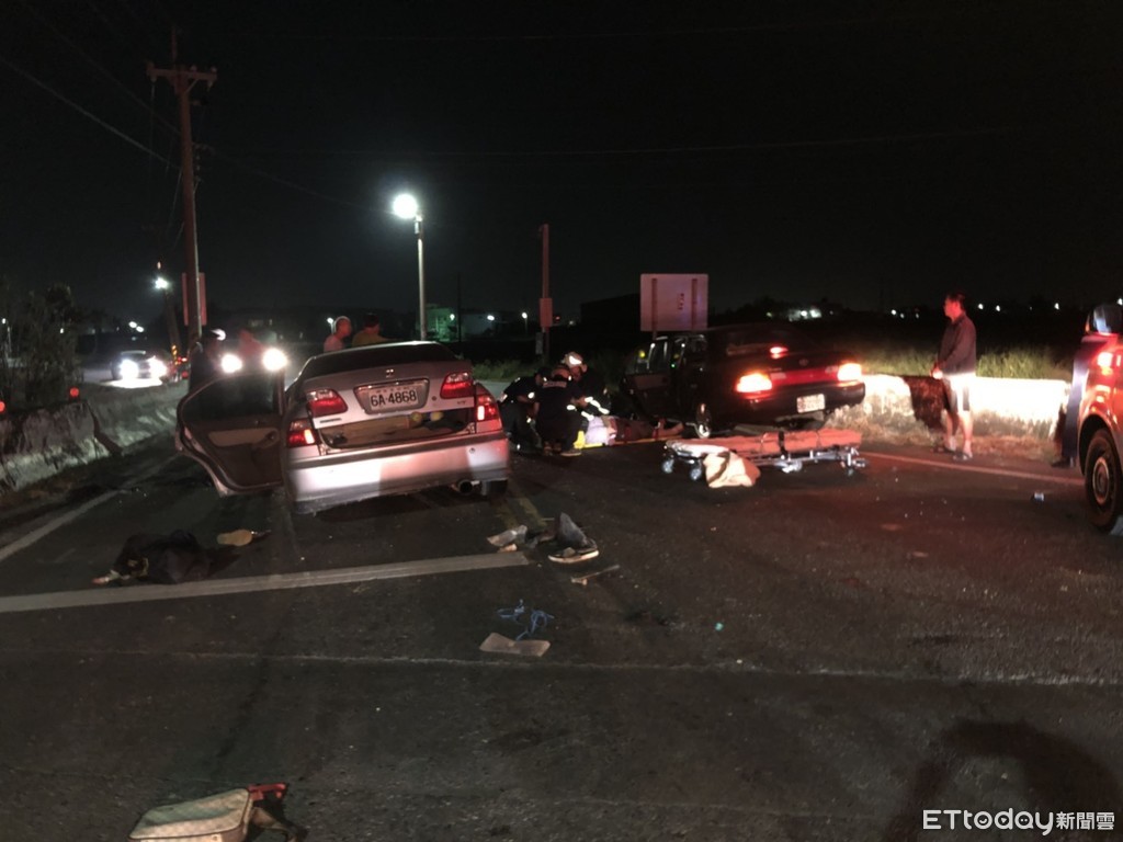 嘉義縣消防局26日22時13分接獲民眾通報,新港鄉嘉67、68線路口,發生小客車車禍事故,搶救人員22時20分抵達,回報現場2部自小客車車頭車身皆嚴重毀損,駕駛及傷者分別為4男2女、1男童及1女童共8名傷者皆意識清楚,分別由救護人員送往長庚、衛朴醫院救治,是否酒後肇事及詳細肇事原因,將由警方進一步釐清。
