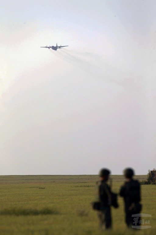 隨後,C-130運輸機進行物資投放,並順利落於預定空投場域內。