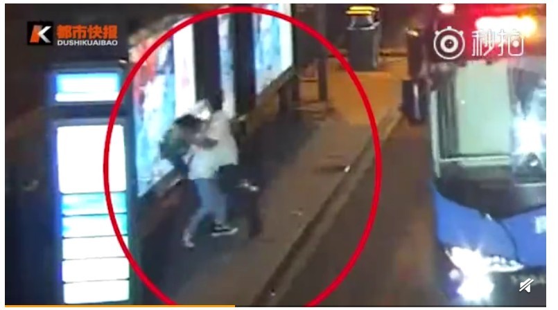 女子小涵22日晚間9時左右,在杭州文三路東方通信大廈門口等公車,當時她低頭滑著手機沒注意到四周狀況,突然就被一名白衣男子抱住,對方還親了上去,嚇得她手機掉在地上,撿起後看到男子已經逃跑。
