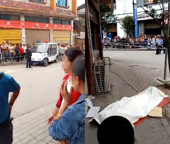 另一段影片中則見到,警察已抵達現場,並拉起封鎖線,肇事車輛則停在對街,有許多群眾圍觀,背景也不斷傳出哭聲,鏡頭帶回到事故發生地時,只見地上鋪了白布,疑似已經死亡。