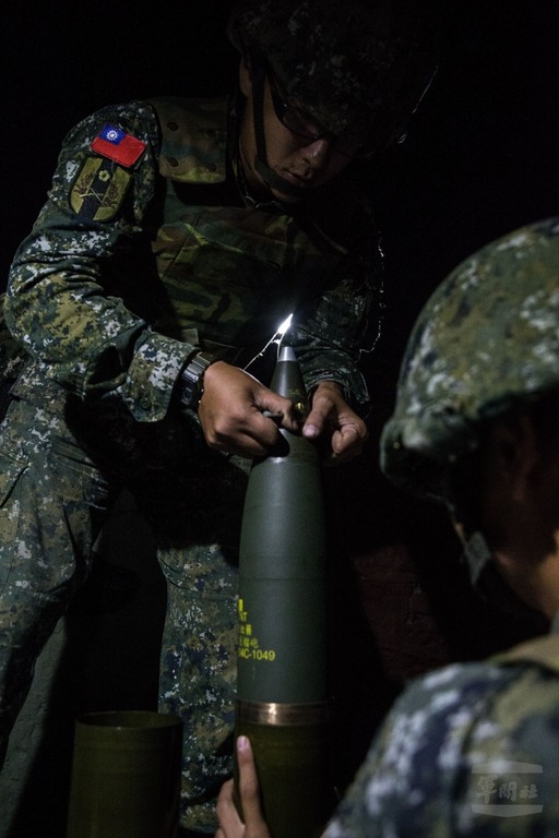 陸軍馬祖防衛指揮部27日上午實施「聯合反登陸作戰操演」實彈射擊,北高守備大隊拂曉出擊;天還未亮,官兵們已在砲陣地檢裝檢彈,為射擊任務做好萬全準備。