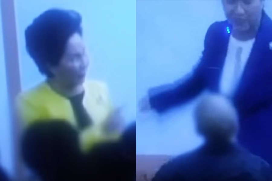▲ 申玉珠毆打身體虛弱的老翁。(圖/翻攝自YouTube/정수박,下同)