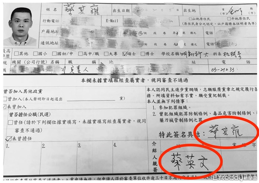 ▲國民黨團爆,推薦蔡其雍入民進黨是蔡英文。(圖/國民黨提供)