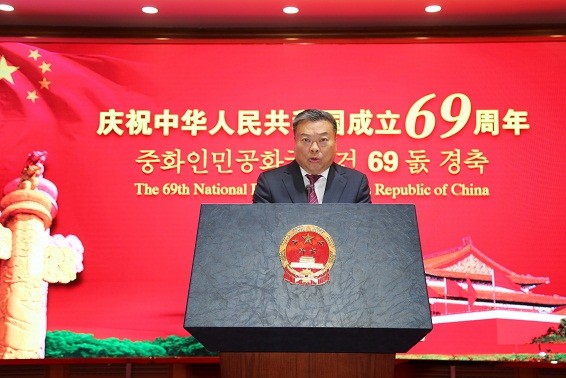 中國駐北韓大使館27日舉行建政69週年招待會,北韓國務委員會副委員長崔龍海率領多名官員前往參加,在會上表示,「兄弟般的中國人民」在中共領導下克服重重難關,「北韓人民對友好鄰邦中國取得巨大成就感到由衷高興」,並與中國駐北韓大使李進軍會面,顯示雙方關係友好。