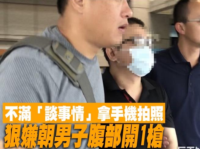 北市中山區一間飯店內,28號上午11時許驚傳槍響,1名男子腹部中彈送醫,警方掌握嫌犯回家拿錢上門逮人,嫌犯到案後供稱,因不滿對方在「談事情」時竟拿出手機拍攝,所以憤而朝男子開槍,事後還帶著女友神態自若逃逸。