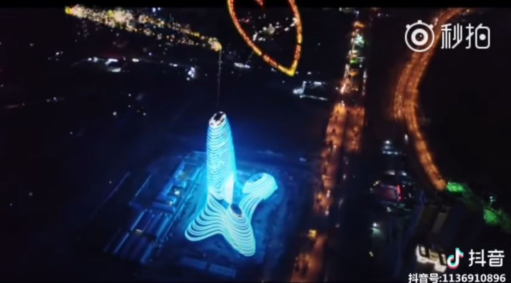 ▼就在即將啟用前,有網友PS了一段15秒短片,讓這座大樓紅遍全球。(圖/翻攝秒拍)