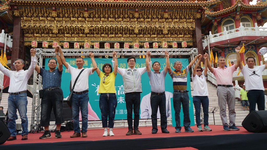 陳其邁則在致詞中表示,旗津民眾一直都很支持陳其邁和民進黨,他要特別感謝旗津人長期的疼惜,讓他有機會在立法院服務,陳其邁說,他在旗津選過3次立委,可說是在地囡仔,對旗津有深厚情感,他舉在地的廣濟宮為例,過去曾因土地產權爭議,有拆除的可能,但他跟謝長廷前市長積極協調,解決問題,讓地方的信仰中心可以繼續存在;此外,他還提到之前有一個攸關漁民權益的案子,我就跟港務局協調了十幾次,後來里長才提醒我不是協調十幾次,是二十幾次。很多人都覺得這些問題都沒辦法解決,但只要是碰到旗津的問題,我都是全力來處理。