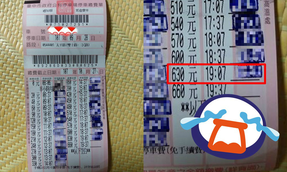 「荷包已乾。什麼都貴,停車也好貴」,女網友在臉書《爆怨公社》貼出一張台中市政府公有停車場的停車繳費單,表示「以前一小時不是20塊嗎?我應該沒記錯」,但仔細看看這張繳費單,停了約11小時,若照原PO說的一小時20元,大約只要220塊,繳費單上卻顯示630元。