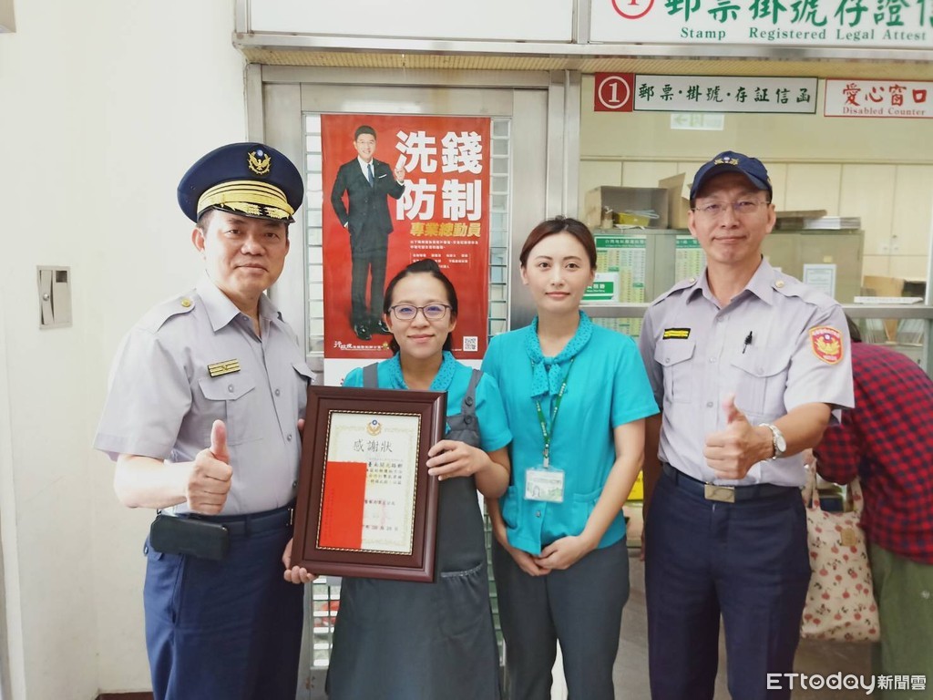 ▲市警五分局長陳錦文前往開元路郵局頒發感謝狀及獎勵金,感謝主動積極協助維護治安。(圖/警方提供)