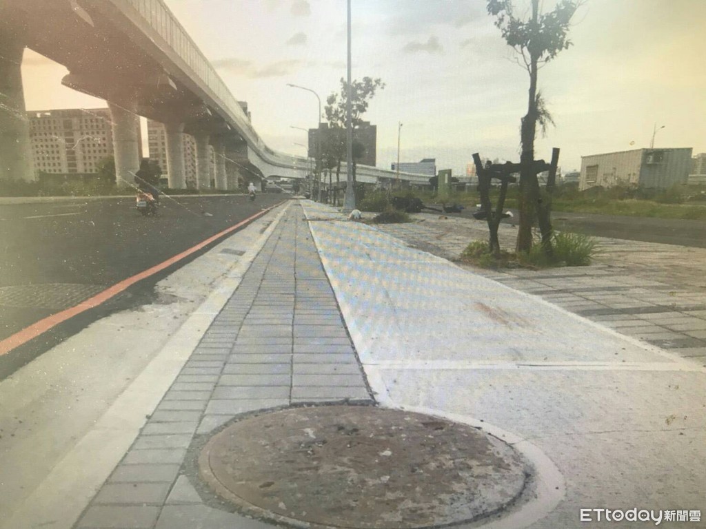 ▲人行道可看到明顯的煞車痕跡。(圖/記者李忠憲翻攝)