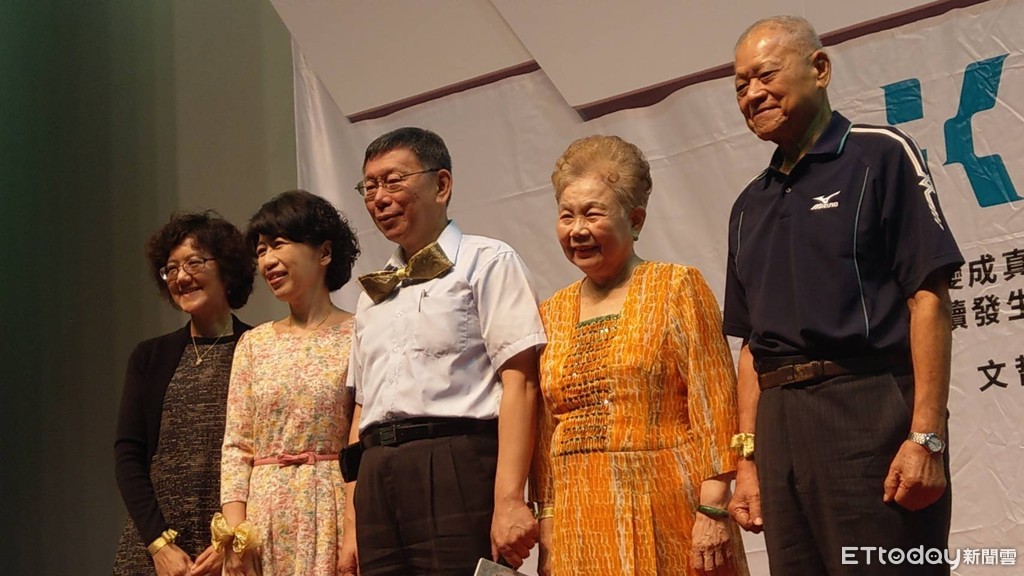 ▲左起柯美蘭、陳佩琪、柯文哲、柯媽何瑞英、柯爸。(圖/記者陳家祥攝)