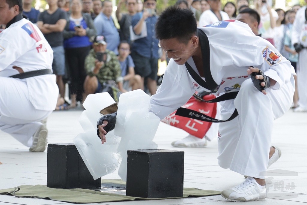 今天活動會場除了展示國防部及中科院近年研發的新式武器裝備外,海軍司令部也加碼演出,安排海軍陸戰隊樂儀隊及莒拳隊,在展覽館外進行精彩的操演,令許多的大小朋友們大飽眼福,一睹儀隊官兵及莒拳隊員們高超的戰技。