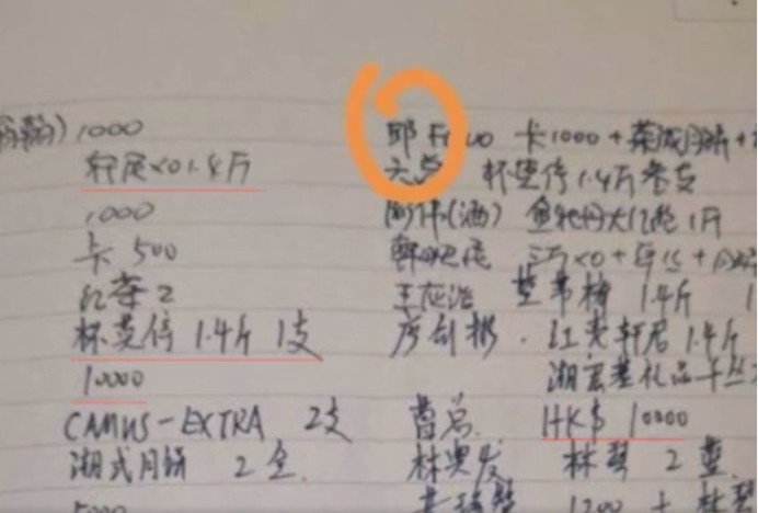 照片中,醫師誤傳的禮品清單包含現金紅包1萬港幣(約3.9萬元台幣)、1萬元人民幣(約4.4萬元台幣)、購物卡、香煙、海參、雪茄及月餅等,而且前面都細心紀錄送禮人的名字,初步統計,送禮人數在30人以上、總價值超過10萬人民幣。