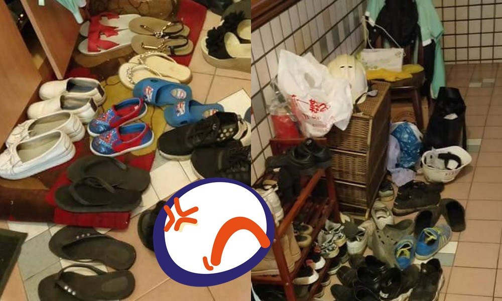 ▲鄰居的鞋子幾乎擋住原PO家門口。(圖/翻攝自爆怨公社)