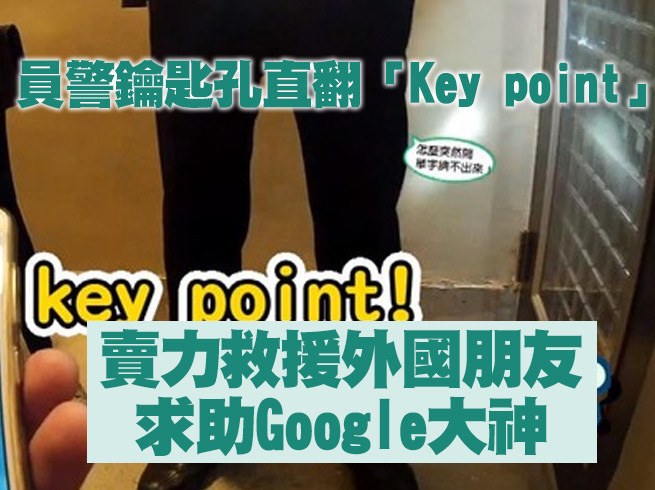 員警也很苦惱地說,「鑰匙就跟孔不合阿,可是要怎麼說英文啊?」還有房東該怎麼說?這時靈機一動趕緊求助google大神,請對方連絡房東,就在苦惱之際,裡頭的室友驚醒開門。