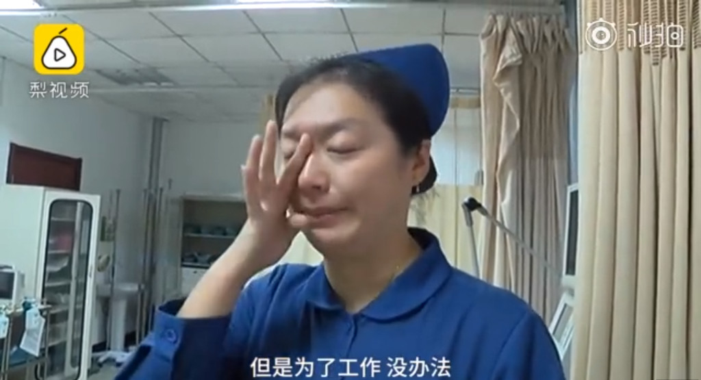 「等媽媽休息帶妳出去玩好嗎?媽媽去上班了!」護理師吳英傑在家門前跟孩子道別,卻換來孩子抱著大腿哭喊「不要走!你好久沒陪我了」。根據《梨視頻》報導,吳英傑在急診室工作10年,這次「十一」只有2天休假。她說,連假大部分時間還是在崗位上,但「孩子想讓我帶她出去玩」,卻為了工作無法如願。說到這時她哽咽拭淚「覺得對不起孩子」,因為每到過節的時候,都無法陪伴家人。
