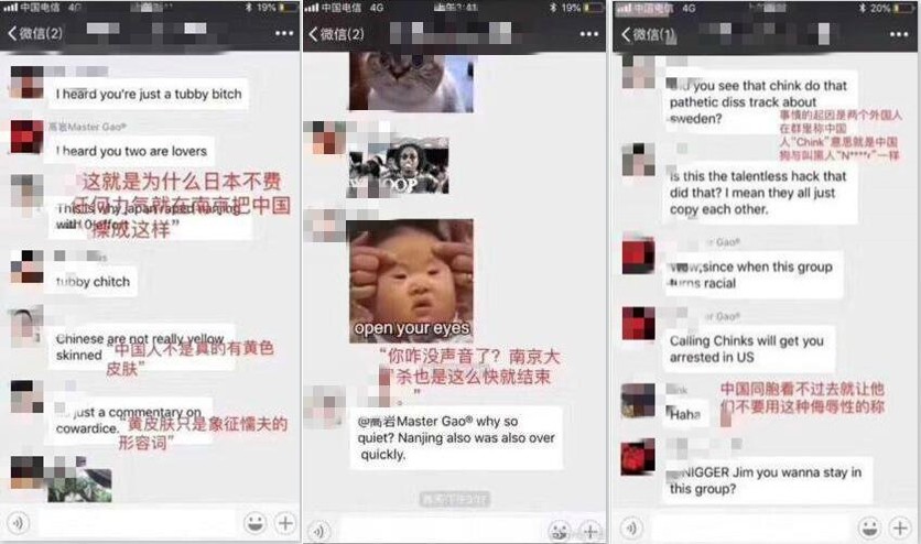 有陸媒訪問群組中的當事人「高岩Master Gao (網名)」,高表示,這件事情發生在27號下午,當時他在這個88人的群組中,看到一名外國男子稱大陸人為「chink」。該字眼在美國俚語中,被視為反華、種族歧視用語。