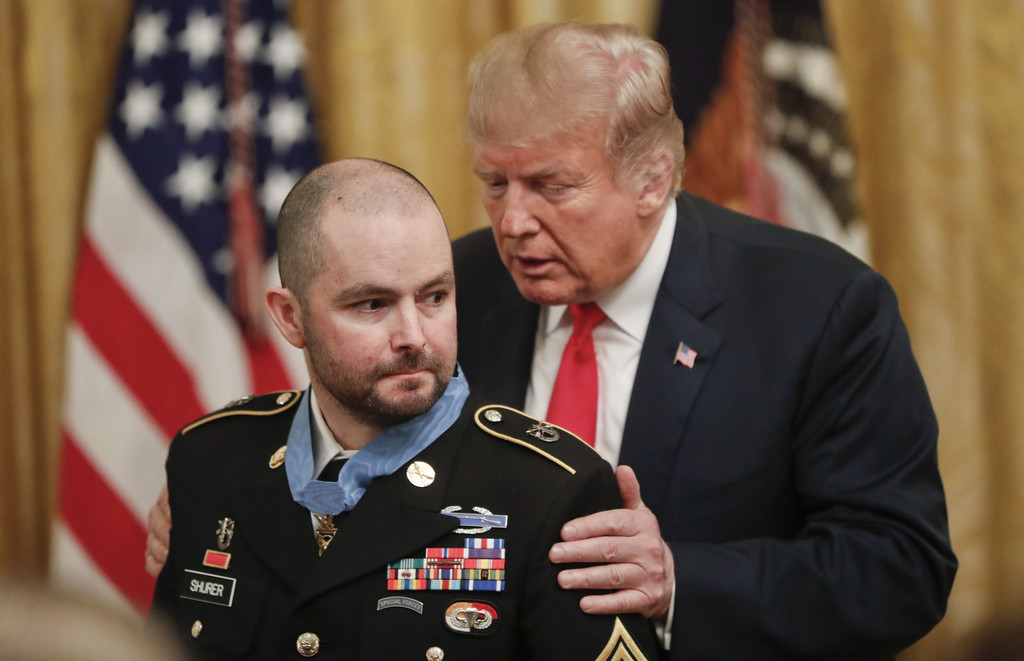 ▲美國軍醫舒勒(Ronald Shurer)在槍林彈雨中救出14名受傷的軍人,川普昨(1日)授予他美國最高軍事榮譽的「榮譽勳章」。(圖/達志影像/美聯社)