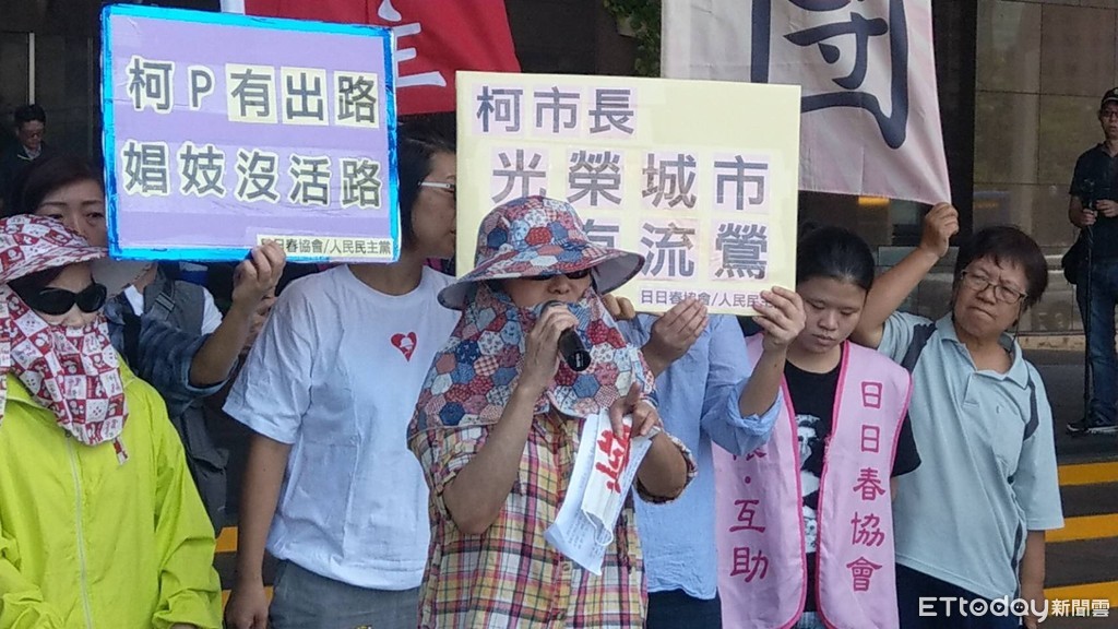 捍衛娼妓權益、爭取性交易合法化的日日春協會,2日上午在北市府前召開記者會,痛批台北市長柯文哲曾稱「性交易應合法管理」,但遲未能有具體政策。協會理事長鄭村棋說,中央政府已修《社會秩序維護法》,讓地方政府得因地制宜合法管理性交易,但台北市卻沒有任何作為,放任老流鶯被警察逮捕,甚至被迫運毒,「柯文哲違法逍遙,流鶯卻違法坐牢。」