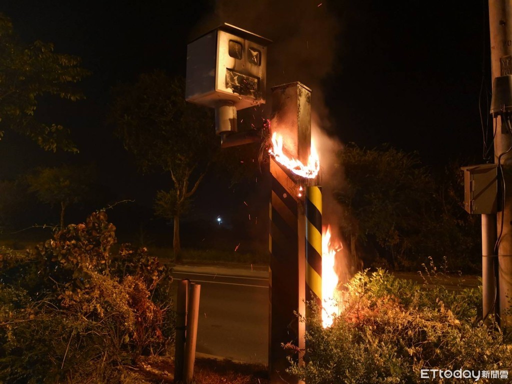 警方表示,歹徒1日凌晨2時許疑似先將輪胎灑滿汽油,再引火點燃,讓火舌燒毀整台測速照相器,幸好周邊並無民宅房舍等建築,未引發火警危機。