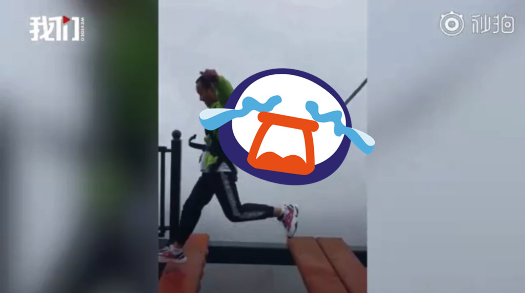 重慶萬盛的奧陶紀主題樂園是大陸第一個「懸崖景區」,有網友上傳挑戰「極限飛躍」的影片,在100米高空跨越距離0.8到2.5米不等的長板,沒想到,在跑道最後一片木板時,背後的安全帶竟然直接鬆脫,網友們看了全部嚇壞,大呼太危險,「令人頭皮發麻!」