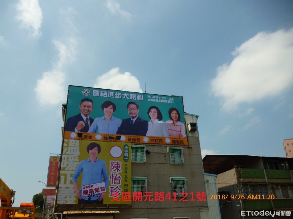 ▲台南市綠營推出各選區聯合競選看板,不但吸睛,更為各區參選人搶曝光,展現黃偉哲母雞帶小雞氣勢。(圖/民進黨提供,下同)